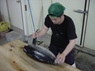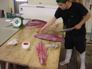 御問屋が入札した、マグロを木箱に入れて、関西、関東方面に出荷します。